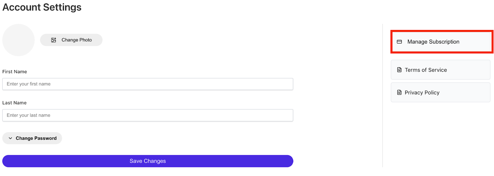 To access your Footnote > Stripe Dashboard, click the “Manage Subscription” button on the right-hand side of the screen.
